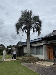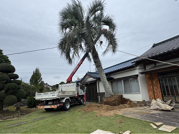 玄関先に植えられ、40〜50年ほど経過したヤシの大木を伐根し、整地しました。