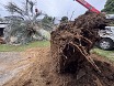 工事では、安全のためロープを張り、クレーンで木を吊って支えながら掘り上げます。その後幹を小さく玉切りし、搬出しました。