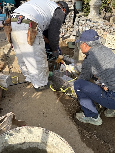 石材を使う施工は、ひとつひとつの収まりが全体の印象を大きく左右するため、現場での調整がとても重要です。